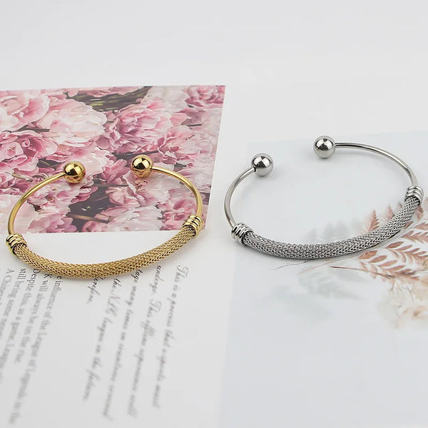 Simple Stainless Steel Twisted Wire Mesh Opening Steel Ball Ladies Bracelet Birthday Anniversary Gift Wholesale