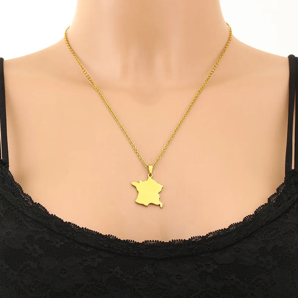 Stainless steel French filigree smooth pendant necklace, suitable for both men and women, versatile ethnic style collar chain