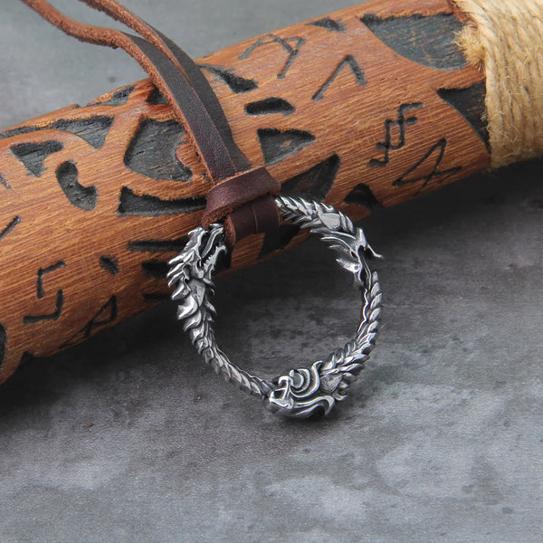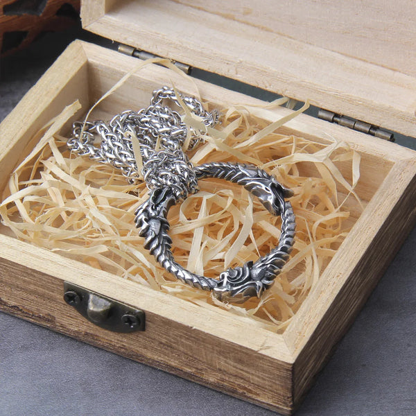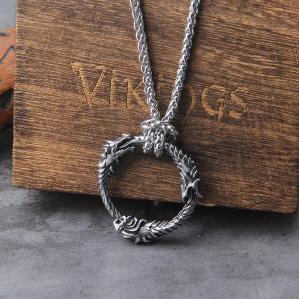 Stainless Steel Goth Infinity Ouroboros Norse Dragon Necklace Pendant Gothic Accessories Amulet Viking Runes Jewelry with box