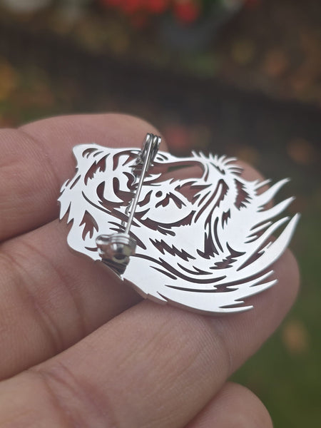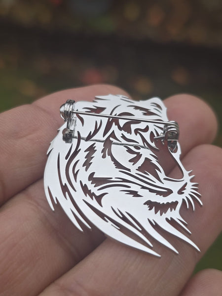 Stainless Steel Plate Crafted Lion Brooch Pin Retro Celebrity Power King broach - gives a touch of elegance to your personality