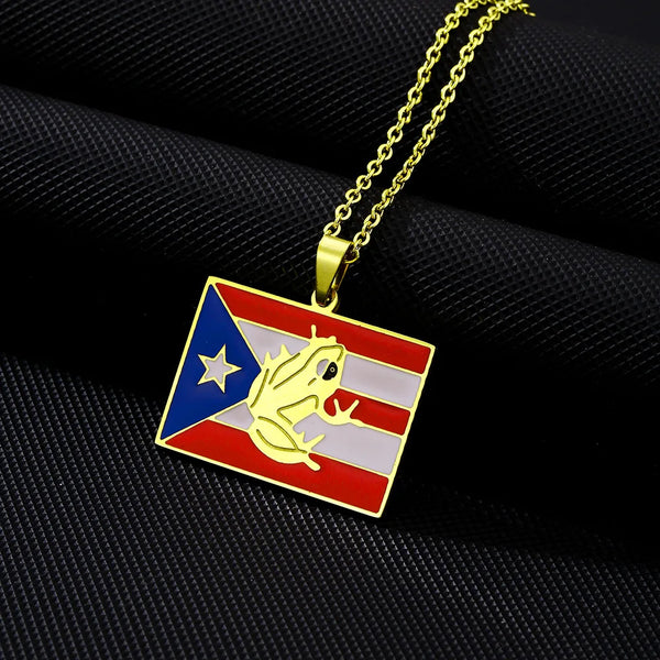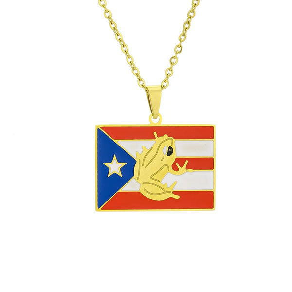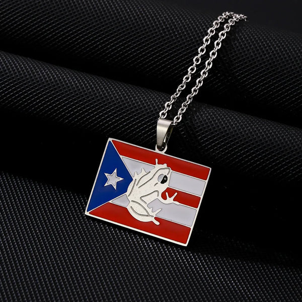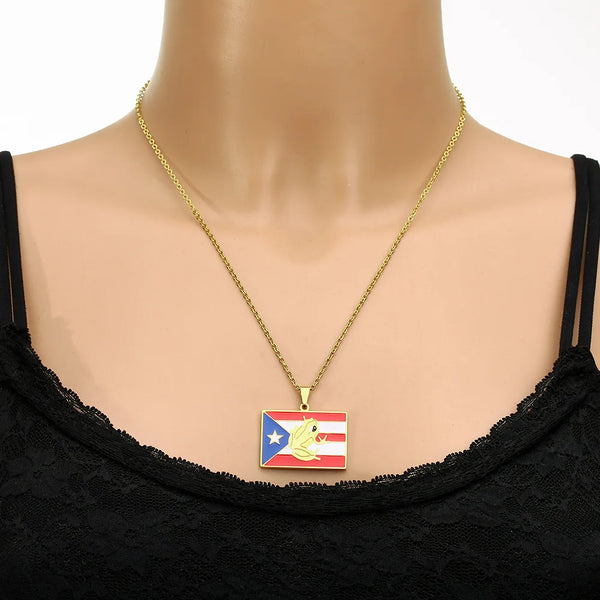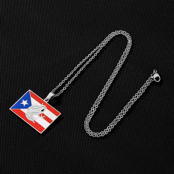 2024 New fashion stainless steel Puerto Rico Flag necklace for women and men couples ethnic style accessory collarbone chain ann