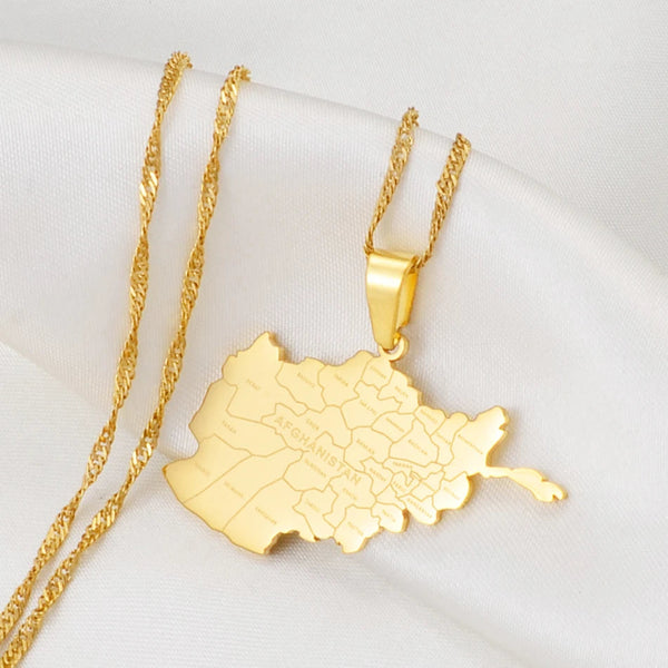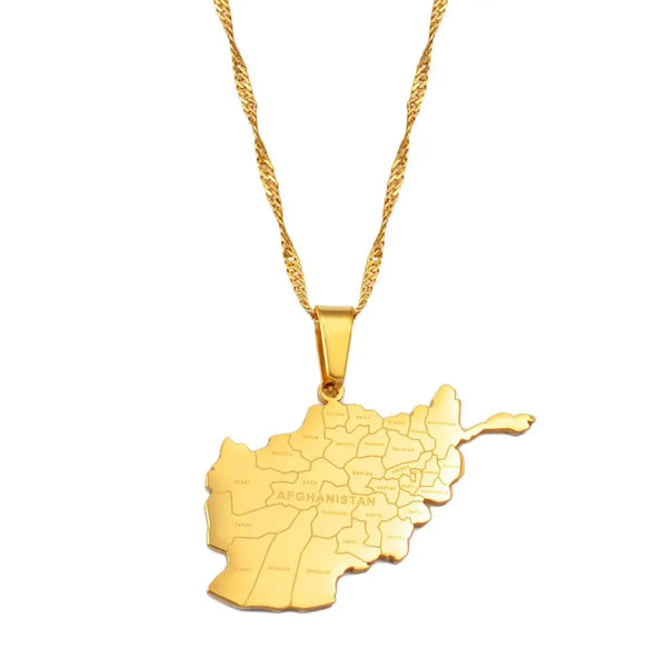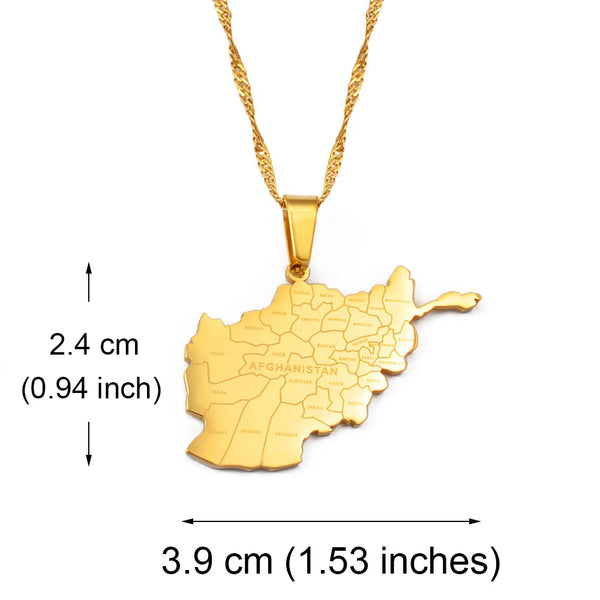 Anniyo Afghanistan Map With Cities Name Pendant Necklaces for Women,Gold Color Afghan Maps Jewelry #211921