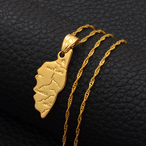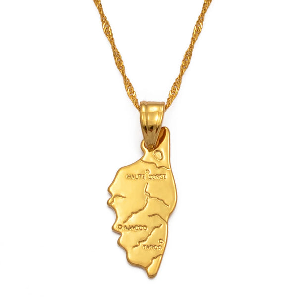 Anniyo Map of Corsica France Pendant Necklaces Corse Jewelry Haute-Corse For Women Girls #300010