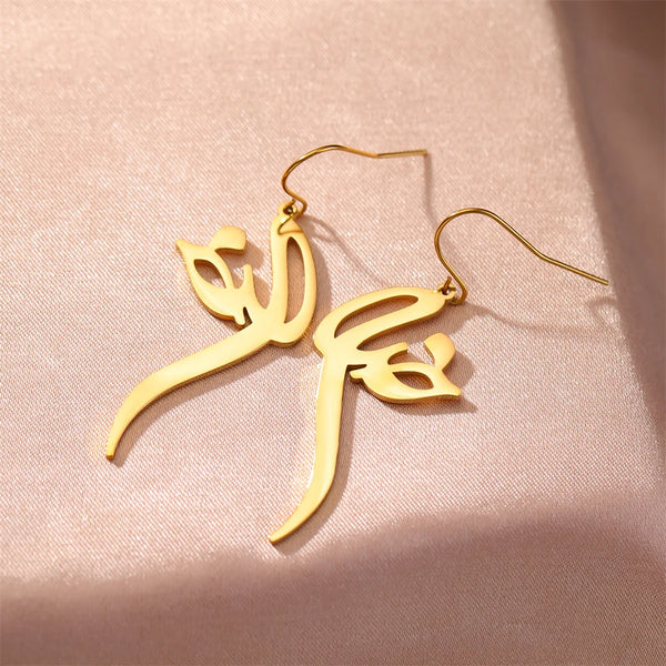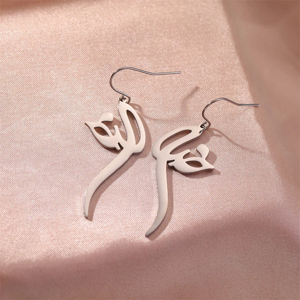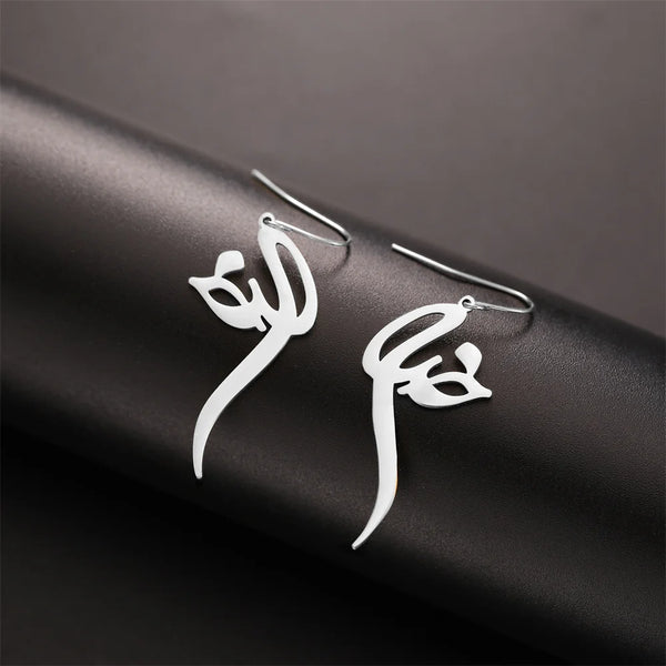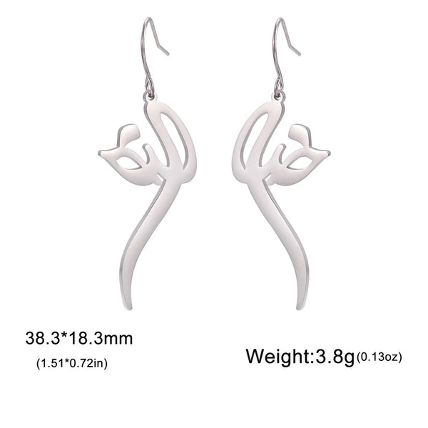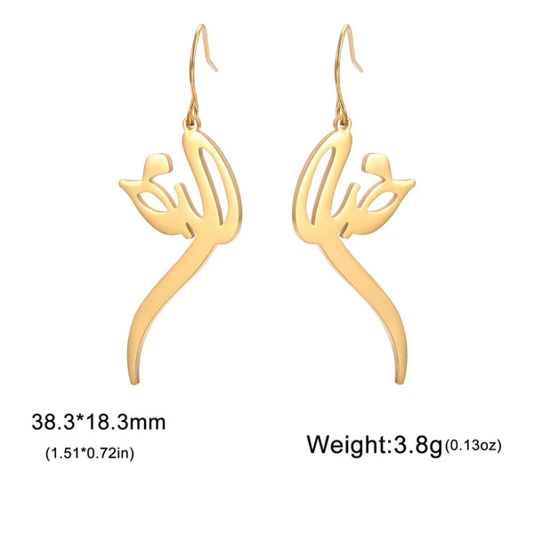 Arabic Letter Pendent Women Earrings Vintage Iranian Persian God Khoda Dangle Earring Stainless Steel Jewelry Lady Wedding Gift