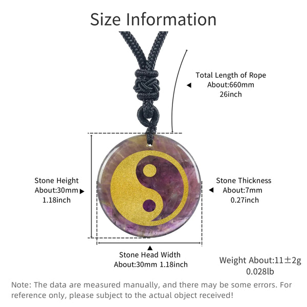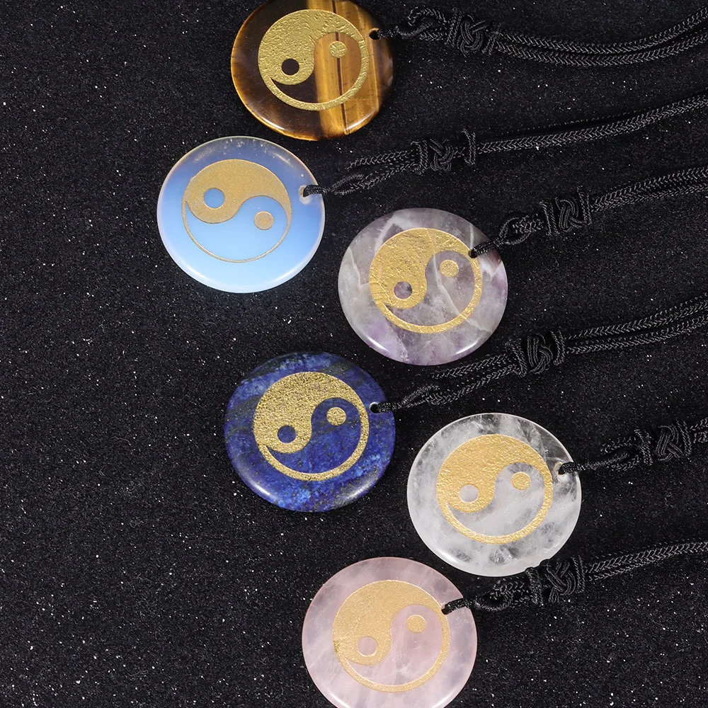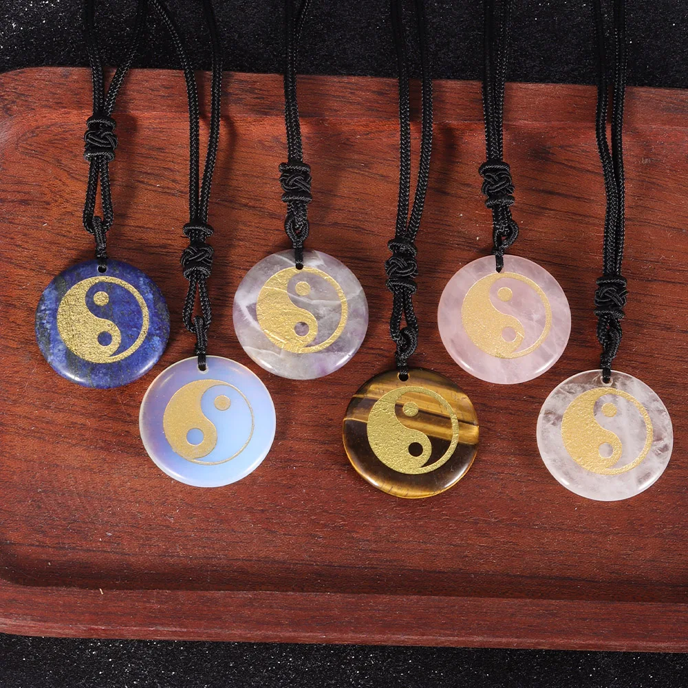 Chinese FengShui Amulet Crystal Quartz Tai Chi Yin Yang Fish Symbol Necklaces Taoist Reiki Energy Exorcism Pendants Jewelry
