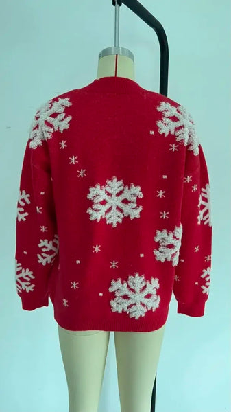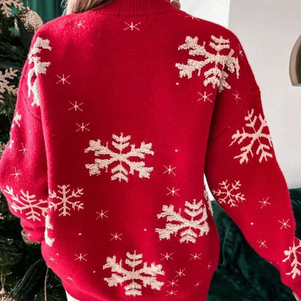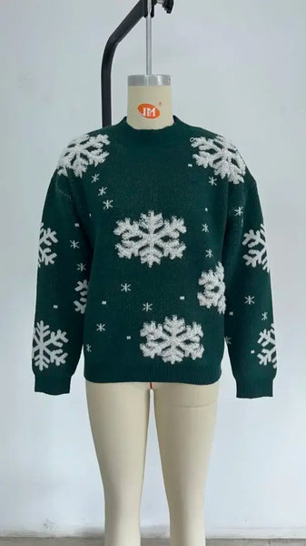 Christmas 2025 Women's Knitted Sweater Snowflake Warm Thicken Jacquard Jumper Oversized Knitwear Full Sleeve Pullovers Xmas Look
