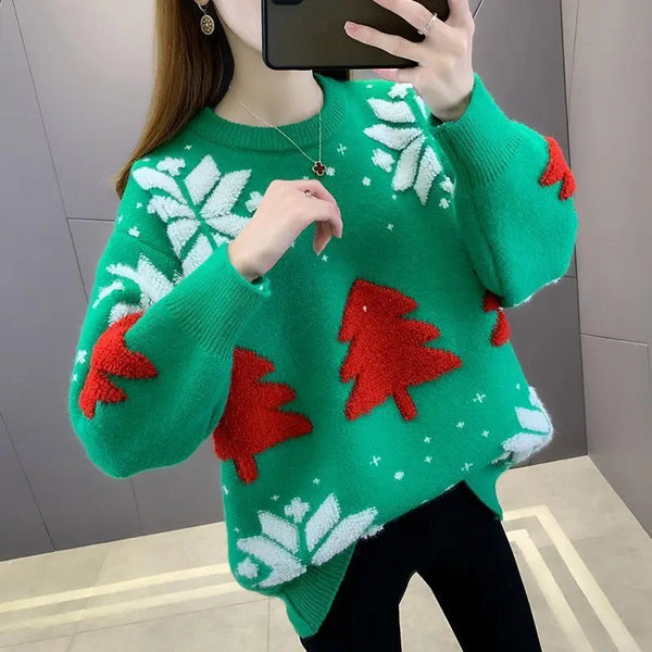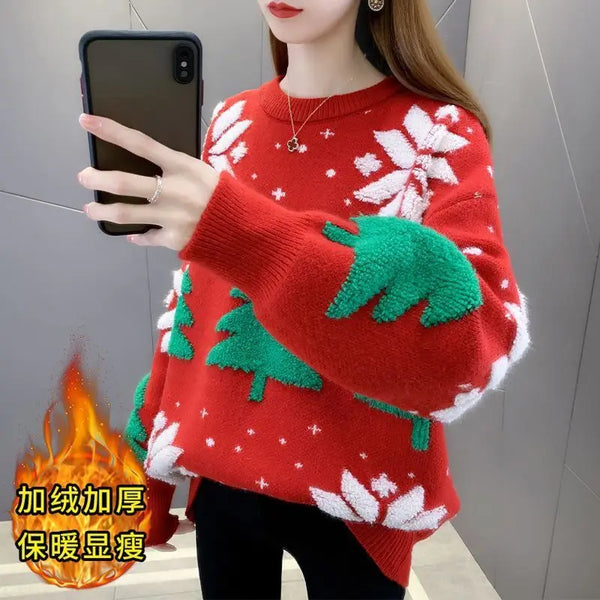 Christmas Sweater New Loose Velvet Thickened Knitted Bottoming Shirt Women Autumn and Winter Red Top