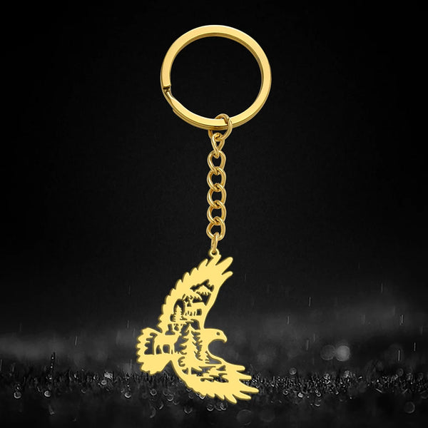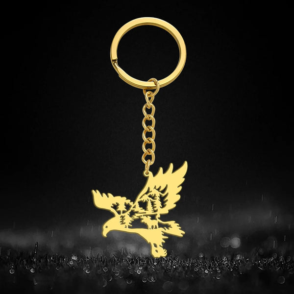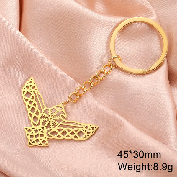 Dawapara Vintage Eagle Crow Raven Pendant Keychain Viking Animal Bird Protection Amulet Stainless Steel Keyring Jewelry