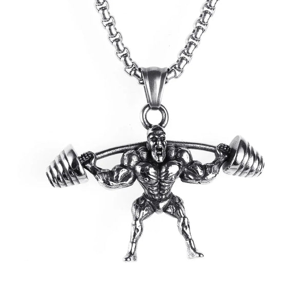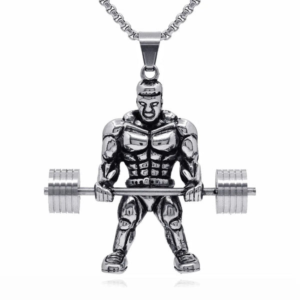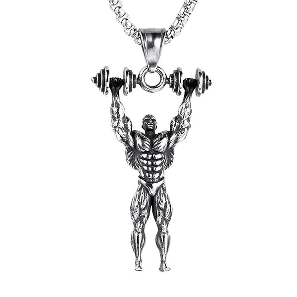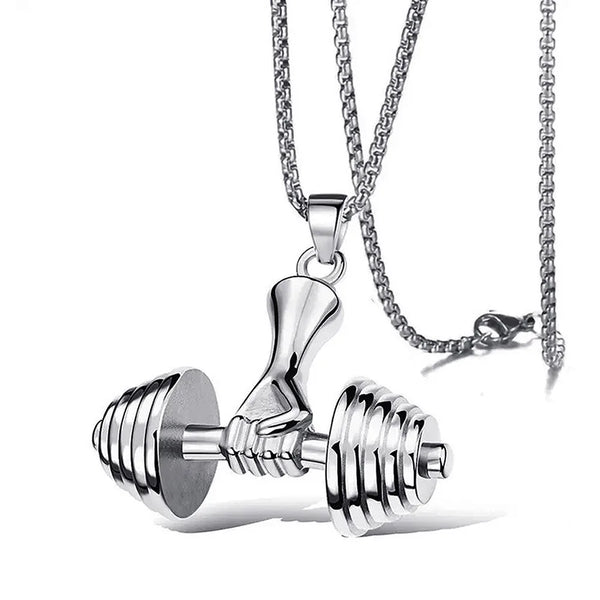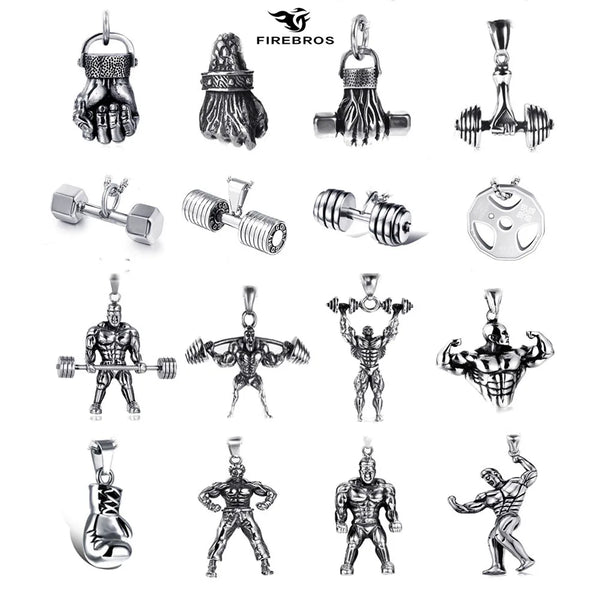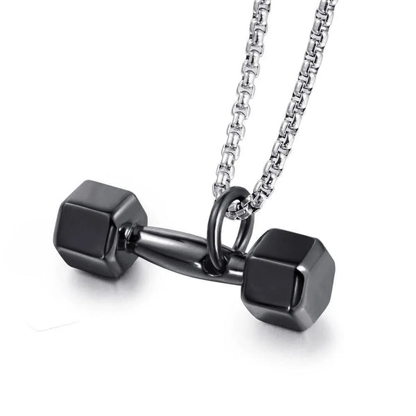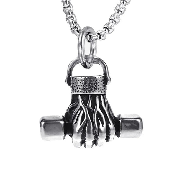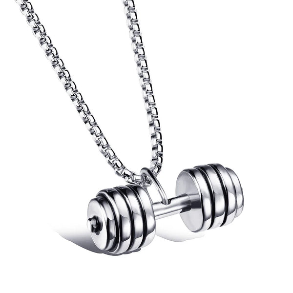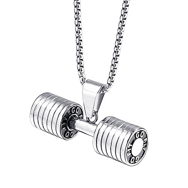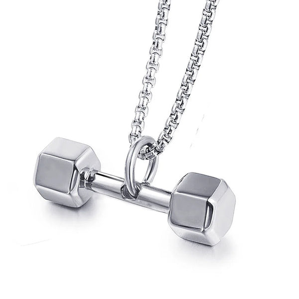 FIREBROS 2025 New Stainless Steel Vintage Gym Fitness Dumbbel Pendant Necklace Men Women Hiphop Rock Jewelry Gift Dropshipping