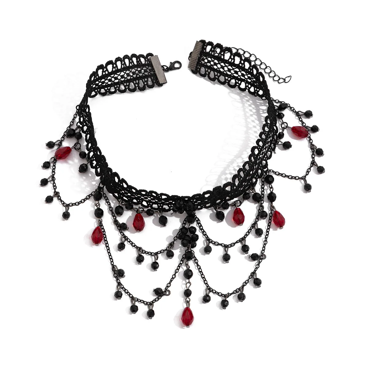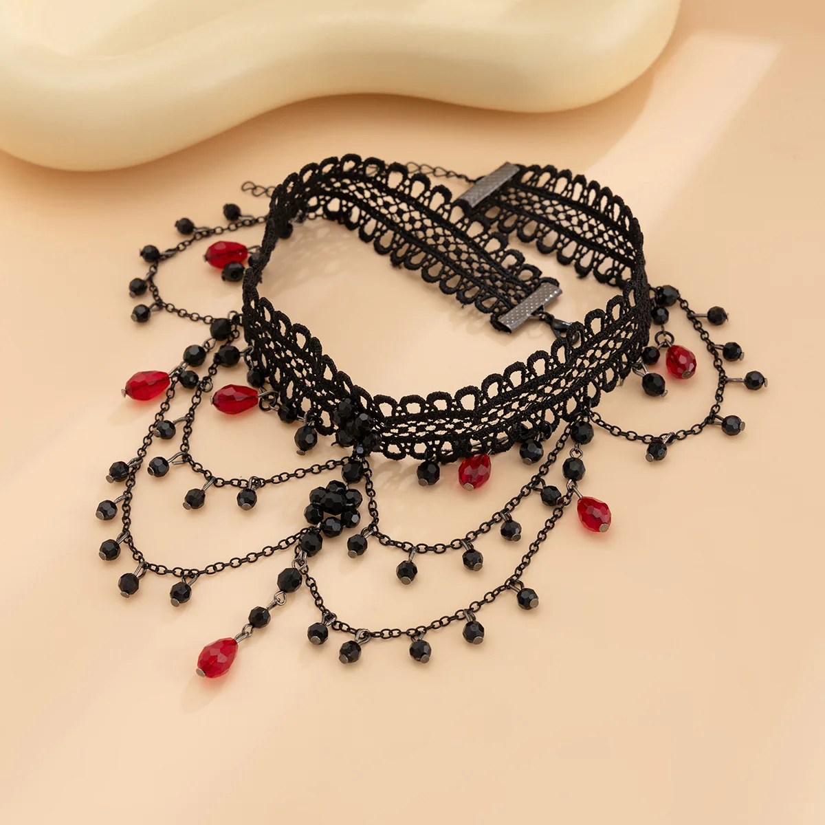 Ladies Gorgeous Black Color Lace Beads Choker Necklace Beach Travel Holiday Fashion Classic Personalized Jewelry Evening D