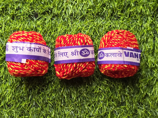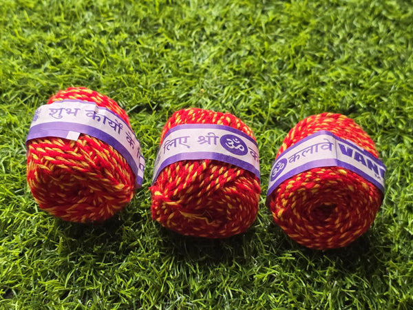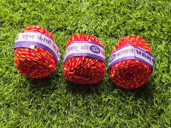 Please read below more information about these threads. Mouli or Kalawa is a cotton red thread roll, considered to be very sacred and used in all religious purposes of the Hindus.