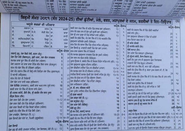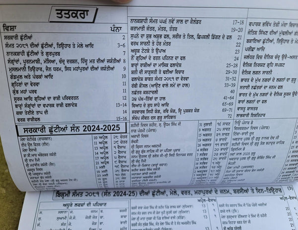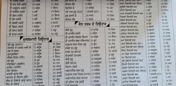 Pandit Devi Dayal Jyotshi Jantari Nanakshahi SIKH 2025-26 CALENDAR Punjabi Hindu Festivals