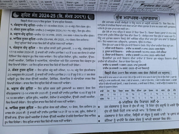 * Future Forecast with planetary readings All festivals - Vrats , Sangrad, Ekadashi, Poornima/Punya, Masya/Amavasya, Dasami etc Desi Indian Months and new month beginning Shabads (Sangrad Waak/Words of Guru) This is a must have Sikh calendar.