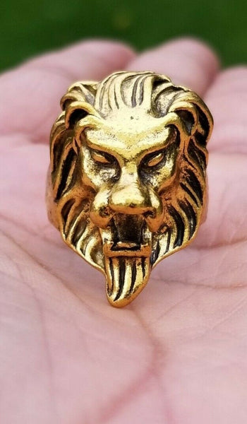 Punjabi Lion Brass Ring Gold colour Roaring Sher Mundari Brilliant Finish Design