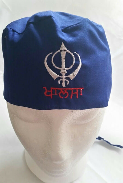 Sikh punjabi turban patka pathka bandana Khanda Head Wrap Blue Singh head Gear for infants to young kids (best for New Born to 3 year old babies)