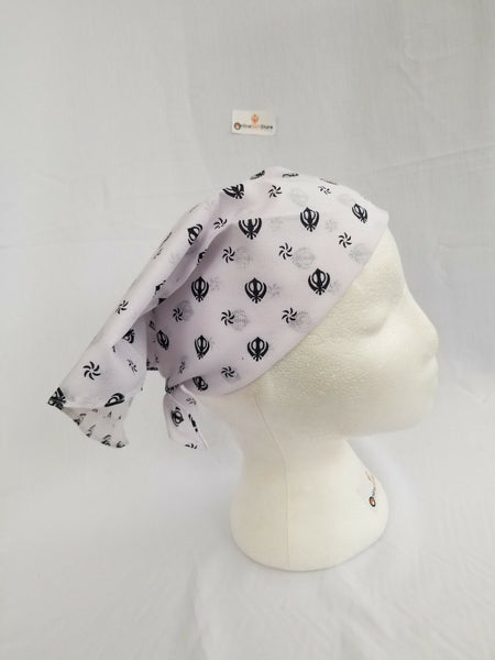 Sikh Punjabi White Khalsa Black Khanda bandana Head Wrap Gear Rumal Handkerchief