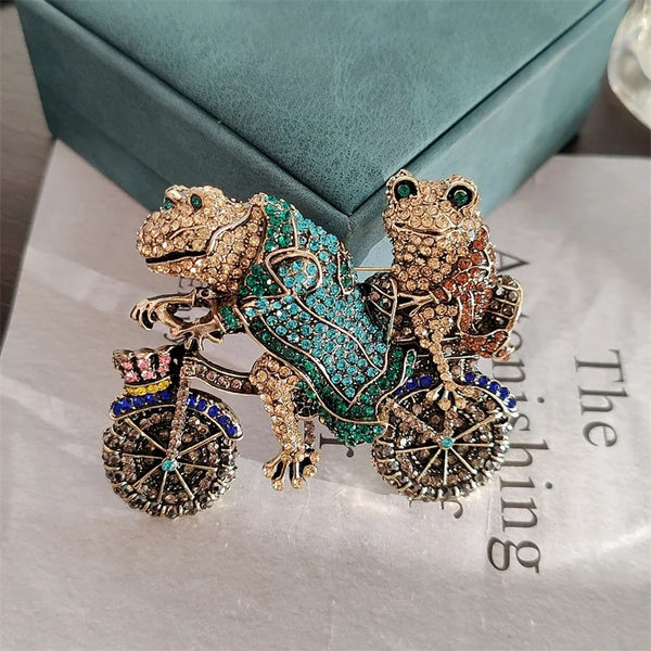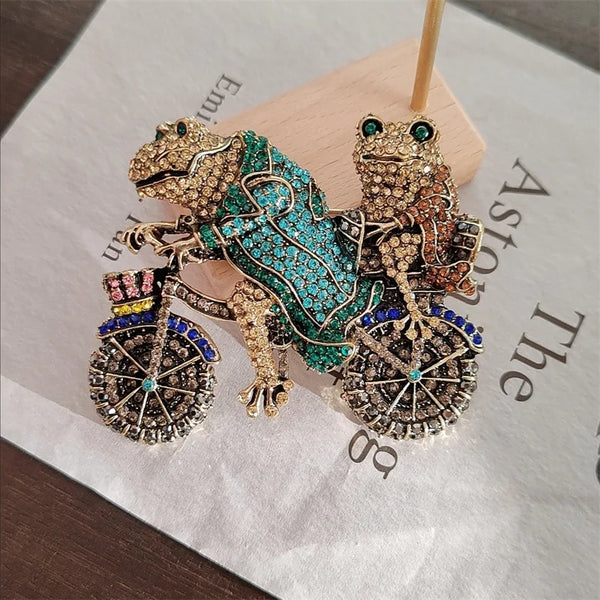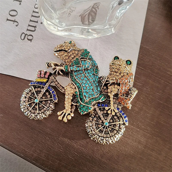 vintage jewelry retro heavy diamond frog prince bicycle brooch women accessories pin